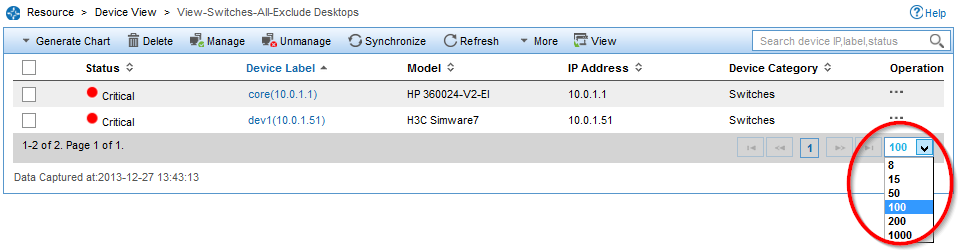 IMC Web interface provides several pages which list devices, users etc. These pages show 50 records by default, and the page can be changed to display a maximum of 200 records. This post shows how to modify the default and the maximum page records.