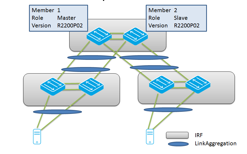 After member 1 has reloaded, the network is fully operational. Member 1 will join the existing IRF system as a slave (since an existing Master was found during the boot process.)