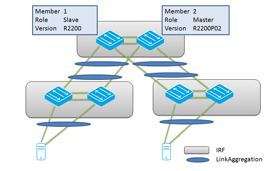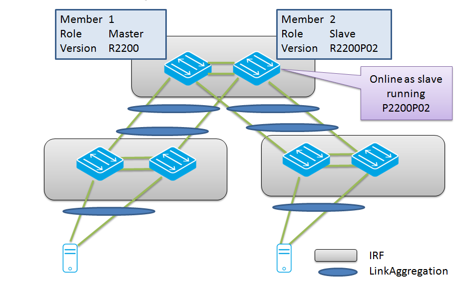 In this step, a member device will be loaded with the new release R2200P02. The current master remains master with R2200. The member will join the IRF system again as member and synchronize the control plane (IRF) tables.